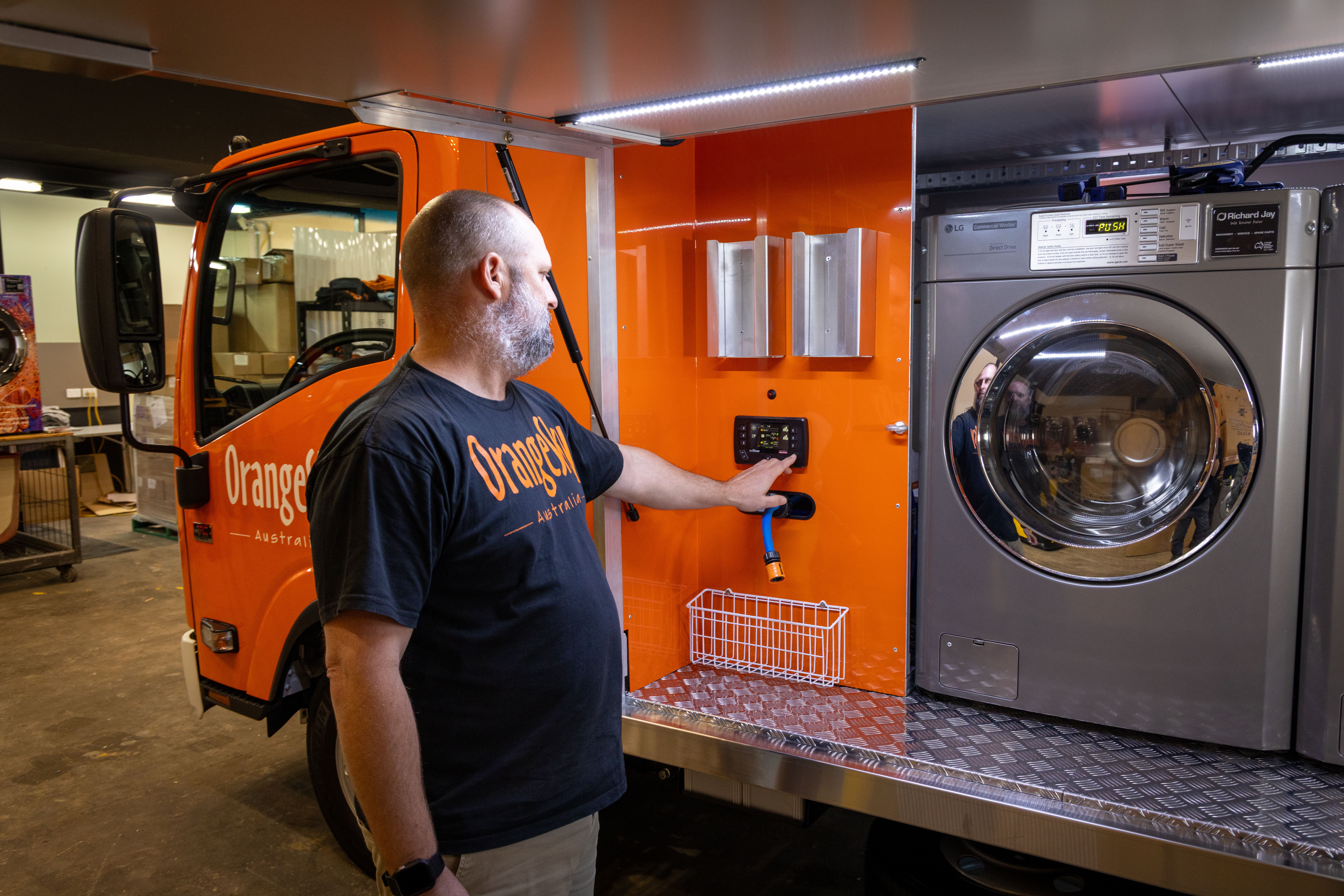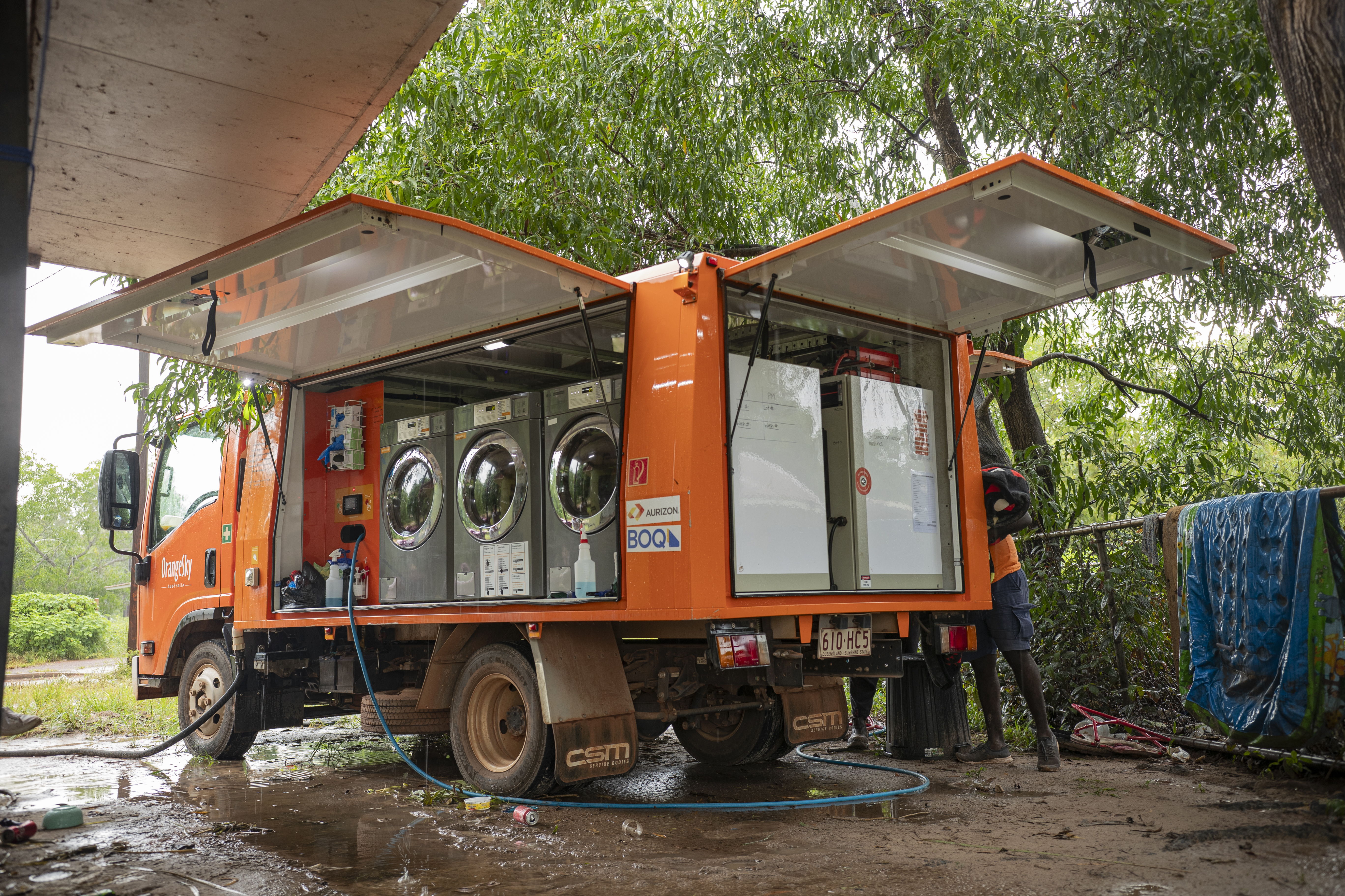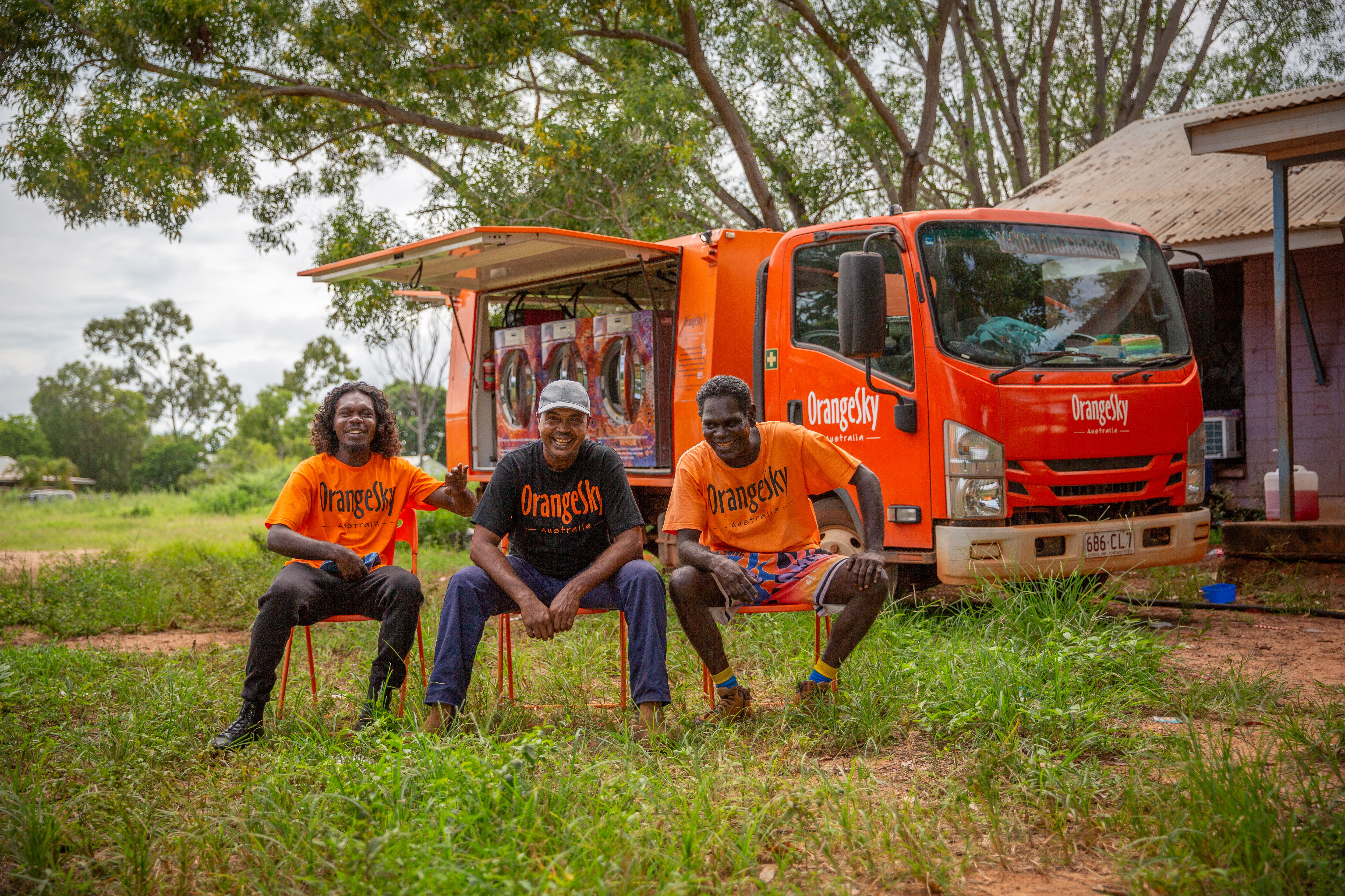 While Orange Sky services operating in metro Australia relies on a dedicated roster of volunteers, for their remote operations, the teams are sourced from the First Nations candidates residing there and employed by Orange Sky to drive the Isuzu trucks and operate the laundry services.