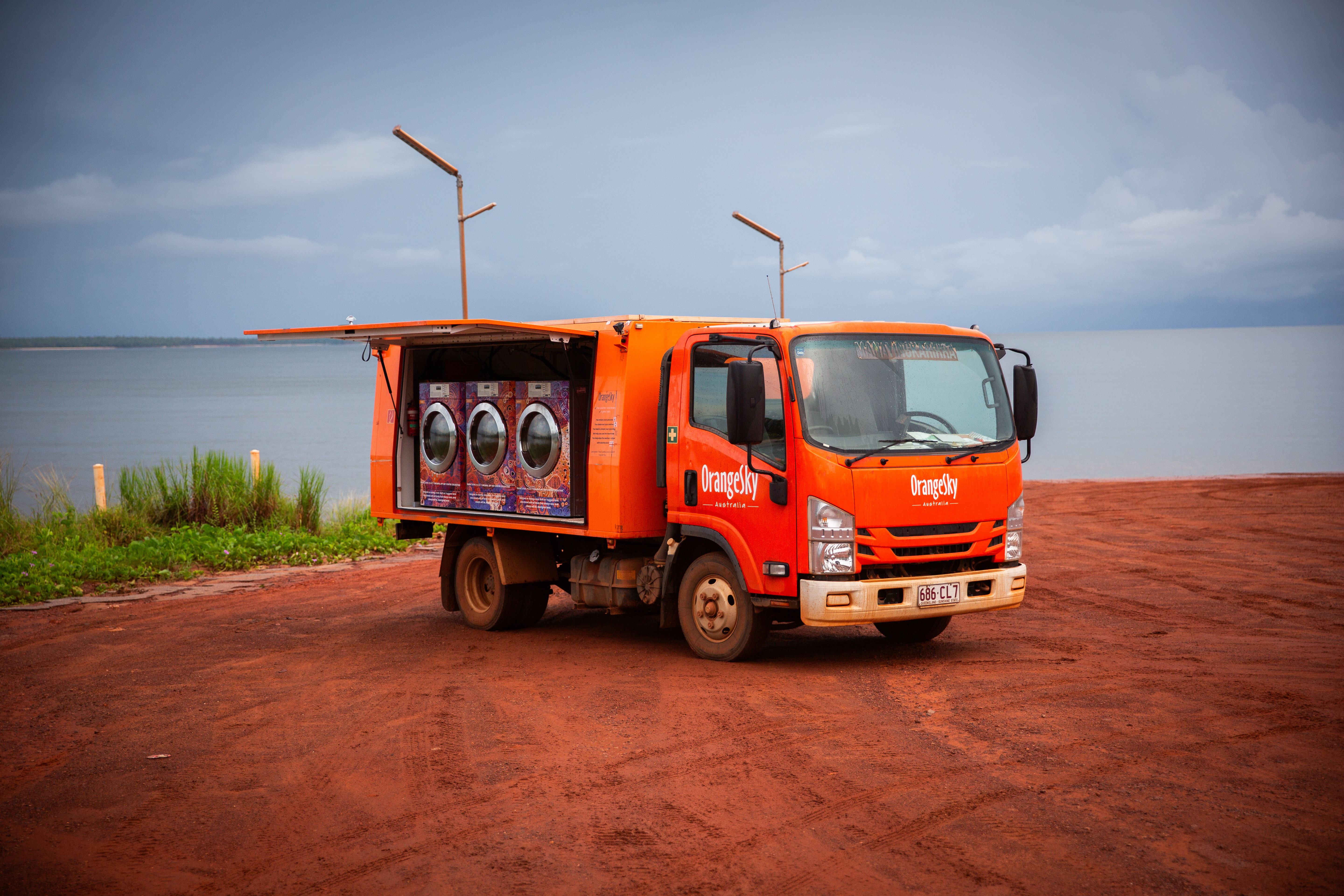 Red earth and shimmering blue horizons; these are the vistas that greet many of the drivers from Orange Sky, as they roll into remote communities across the country with something a little different.