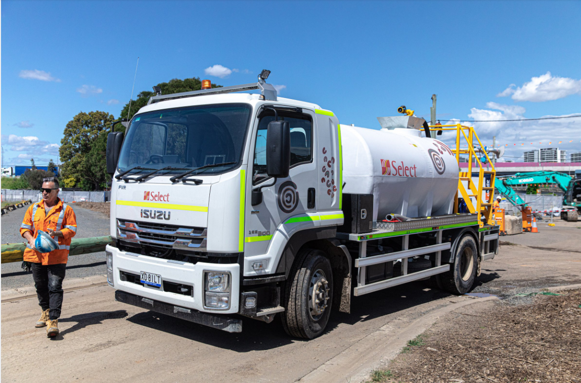 Select Business Unit Leader Nathan Mitschuinig said the company added eight Isuzu FVR 165-300 7,000 litre water tankers and eight FXZ 240-350 14,000 litre water tankers to its fleet earlier this year to work on major construction projects being undertaken by parent company, Laing O’Rourke.