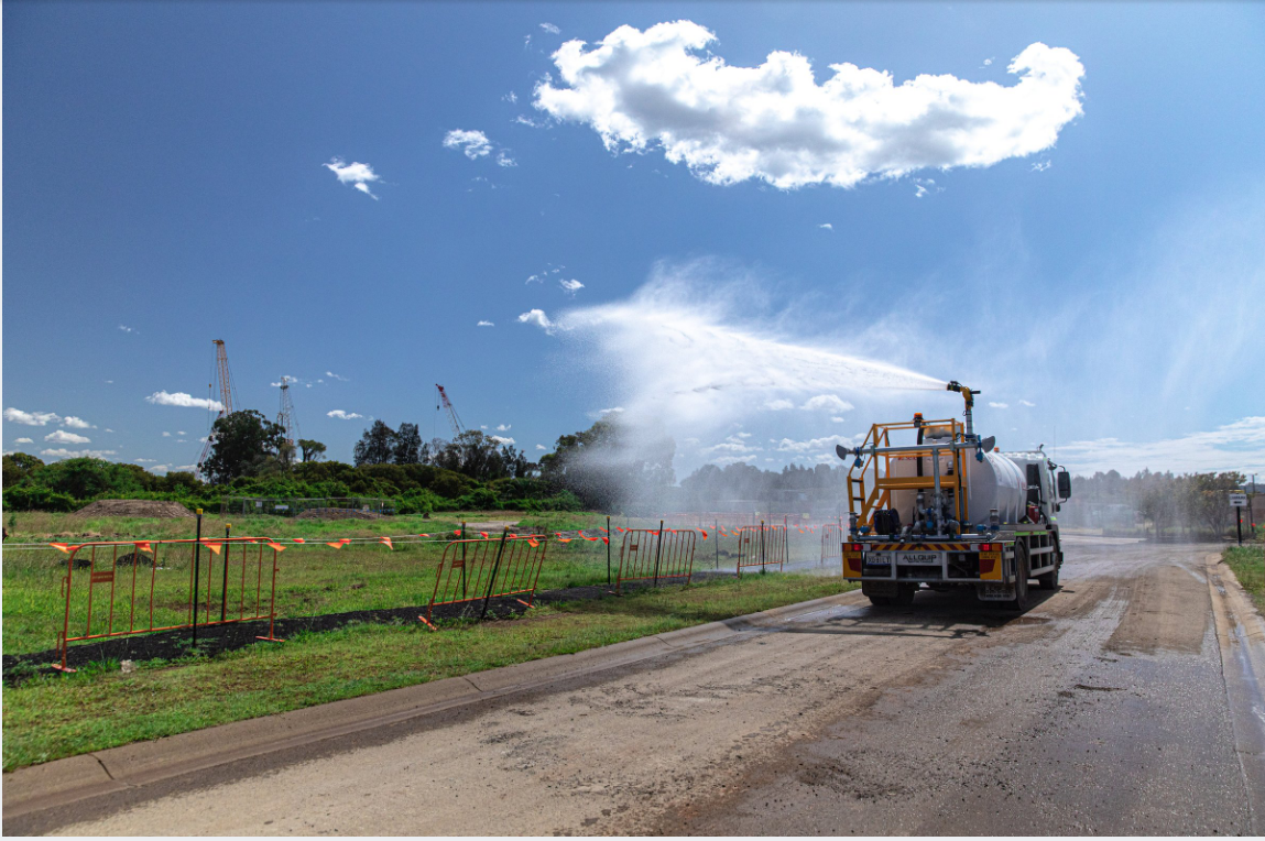 On a fresh Sydney morning, a new Select Plant Australia Isuzu water tanker is hard at work suppressing dust on one of Australia’s biggest transport projects.
